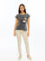 Stone washed Not in Service Black CatPrinted Cotton Women T-shirt