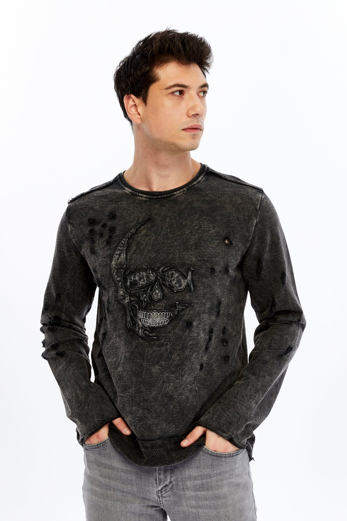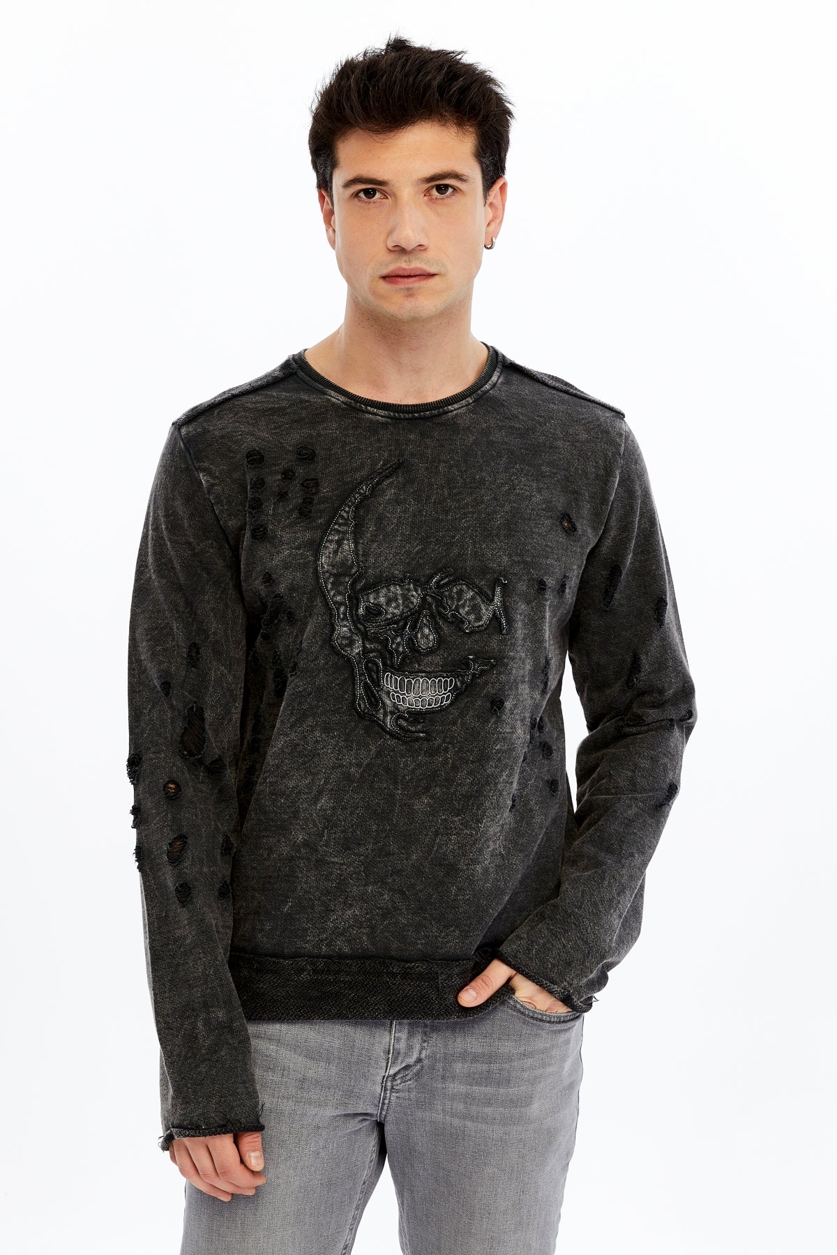 Stone WashedHALFSKULL EMBRODEREDCotton Men's Sweatshirt