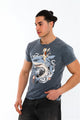 Stone Washed Effect Sushi AnimePrinted Men's T-shirt