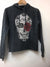 Anthracite Stone WashedRose & Skull Print Crop Top Hoodie