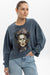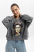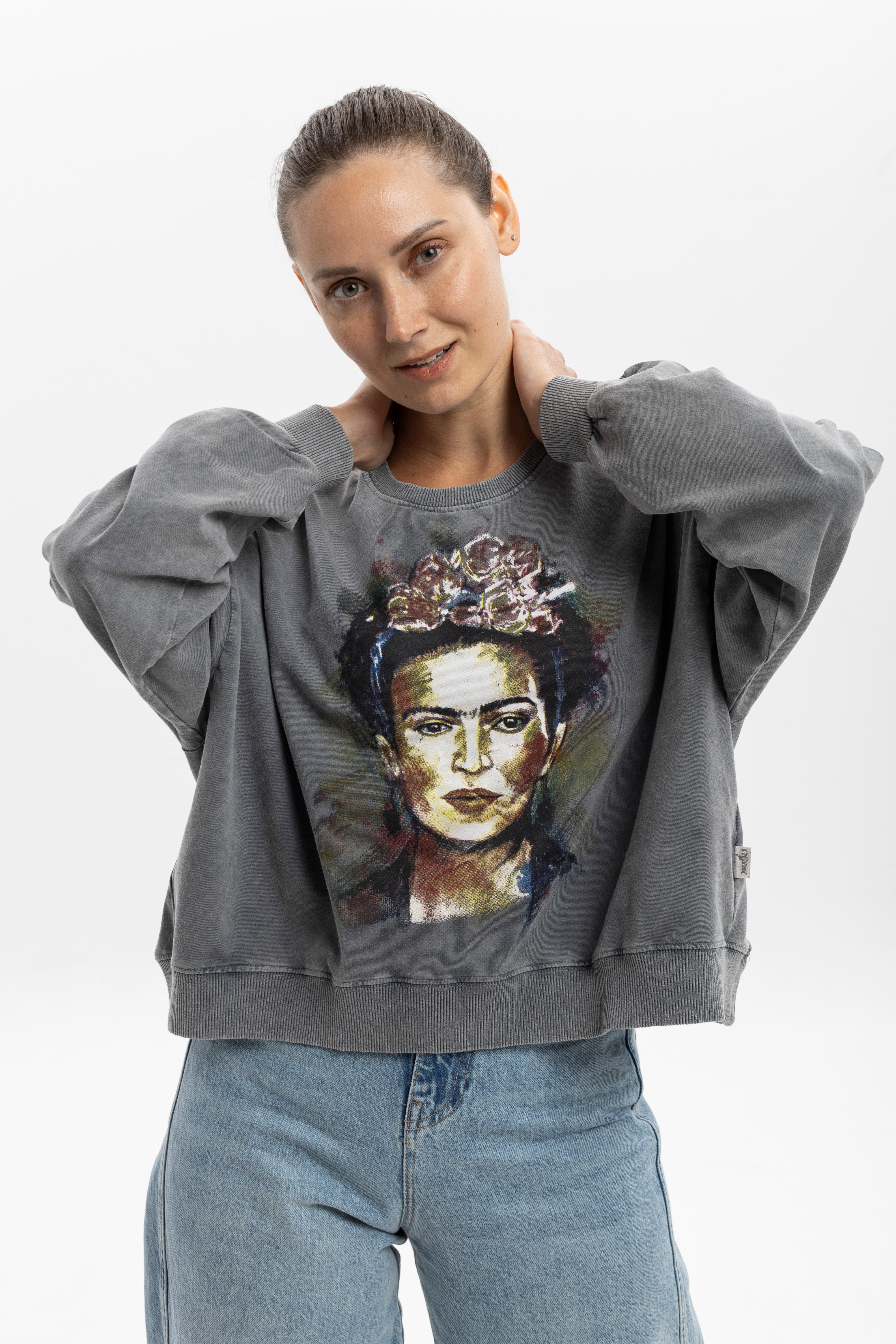 Stone Washed Cotton Freida Khlo PrintWomen Cropped Sweatshirt
