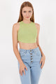Light Grey Stone Washed Solid Rib-Knit Cotton Racer Crop Tank Top