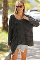 Navy Asymmetric Cut Detail Woman Knitted Sweater