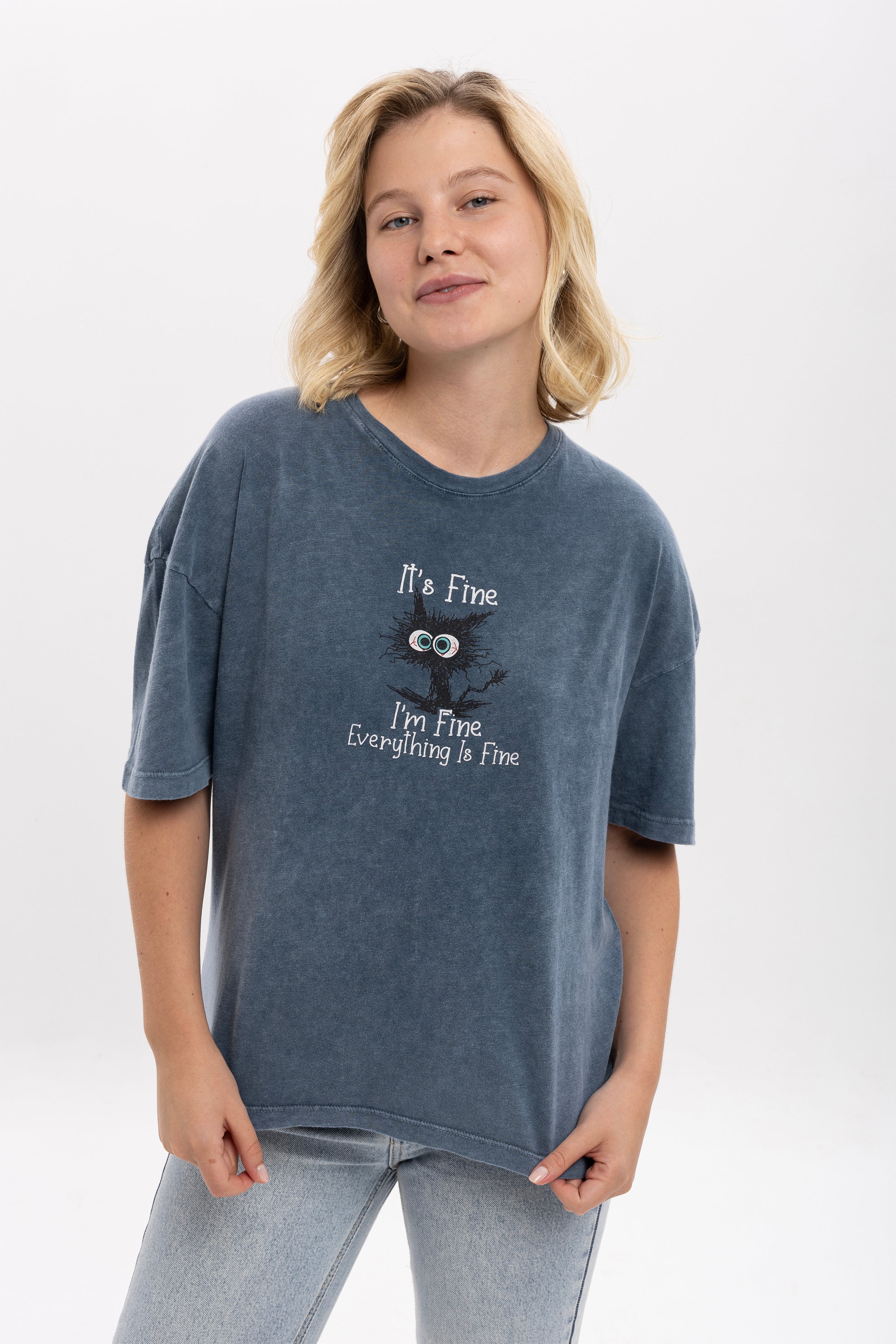 Stone WashedI am Fine Everything Is Fine Printed Women's Relaxed T-Shirt
