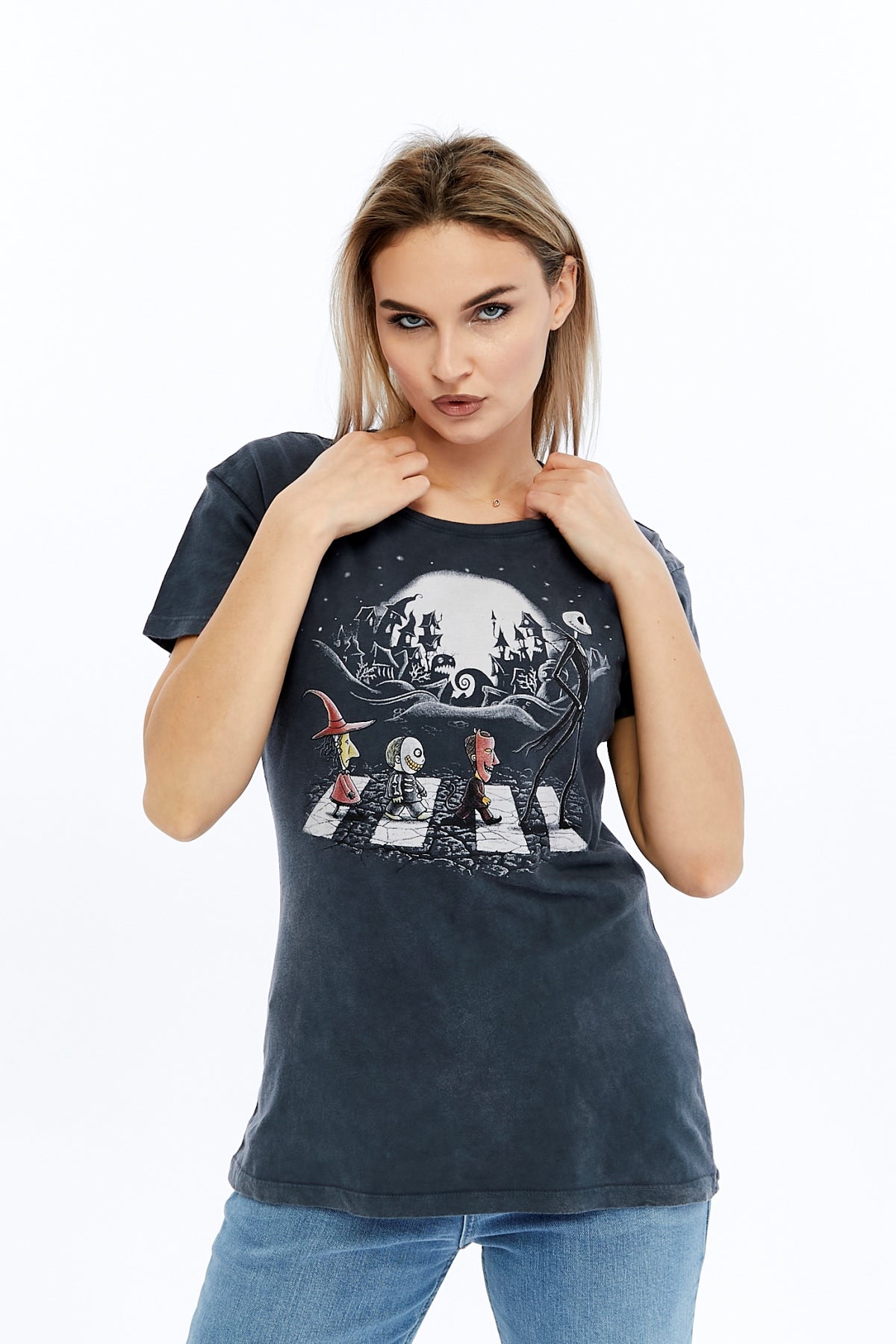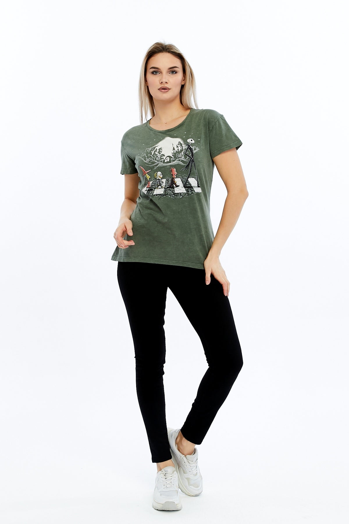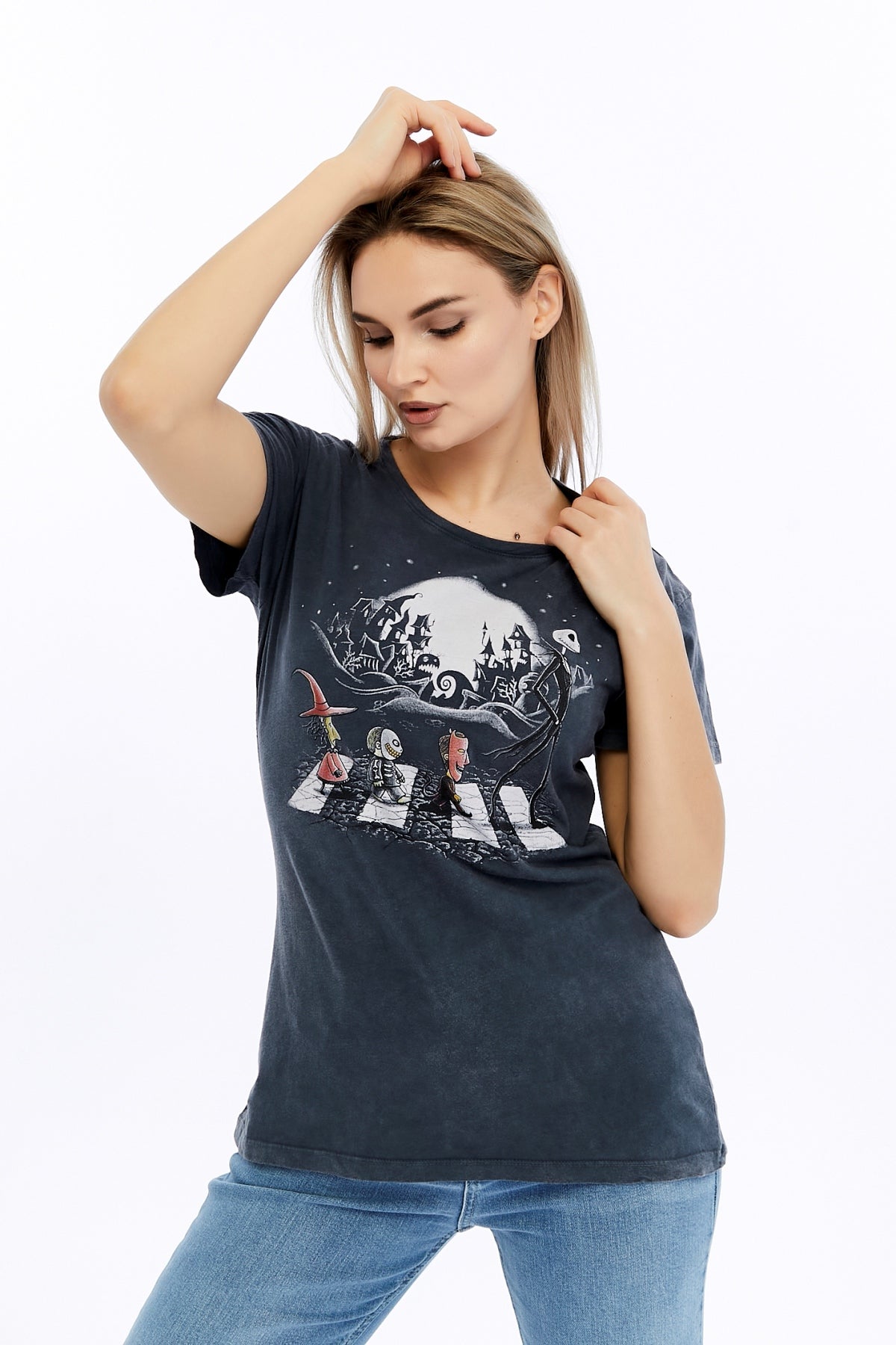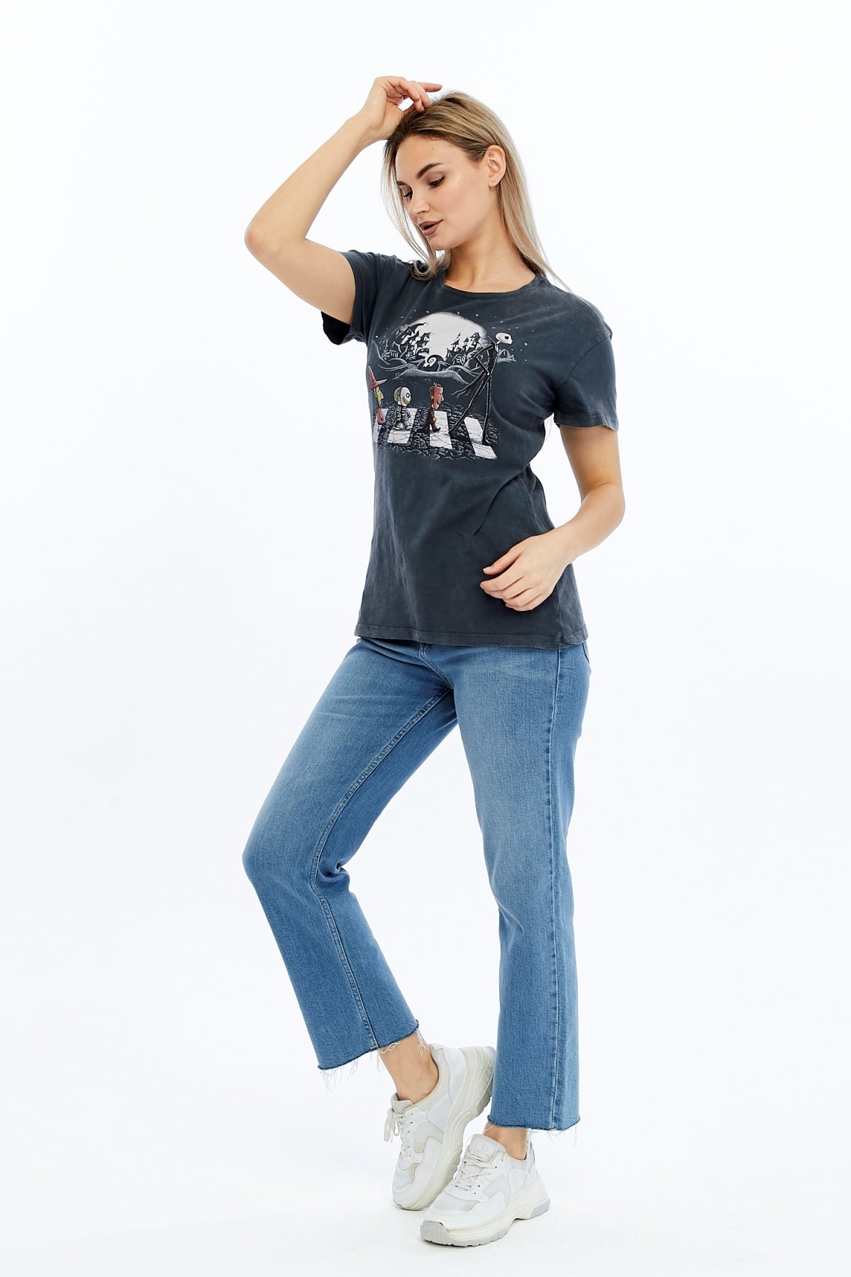 Acid Washed Night Before Christmas Printed Cotton Women T-shirt