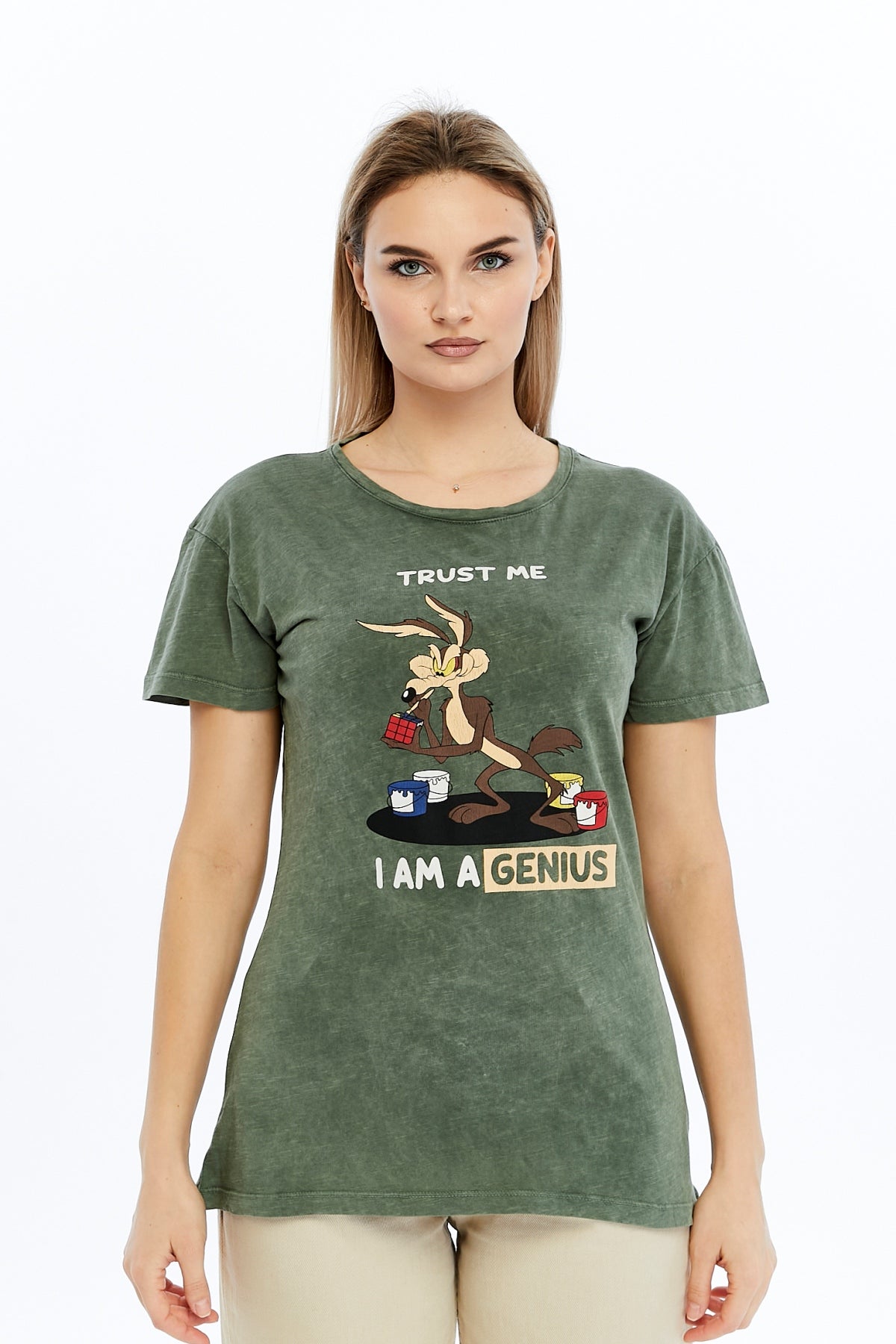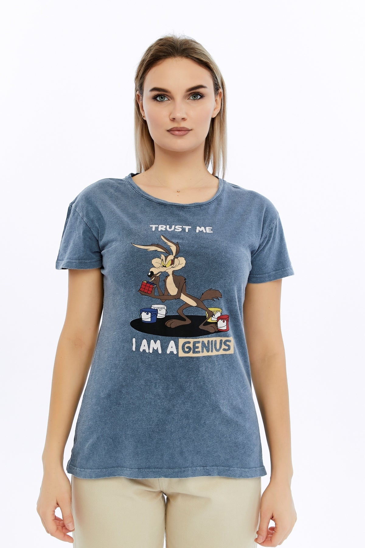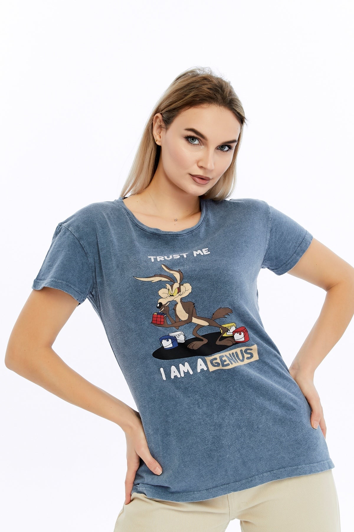 Acid Washed Trust Me I'M GeniusPrinted Cotton Women T-shirt