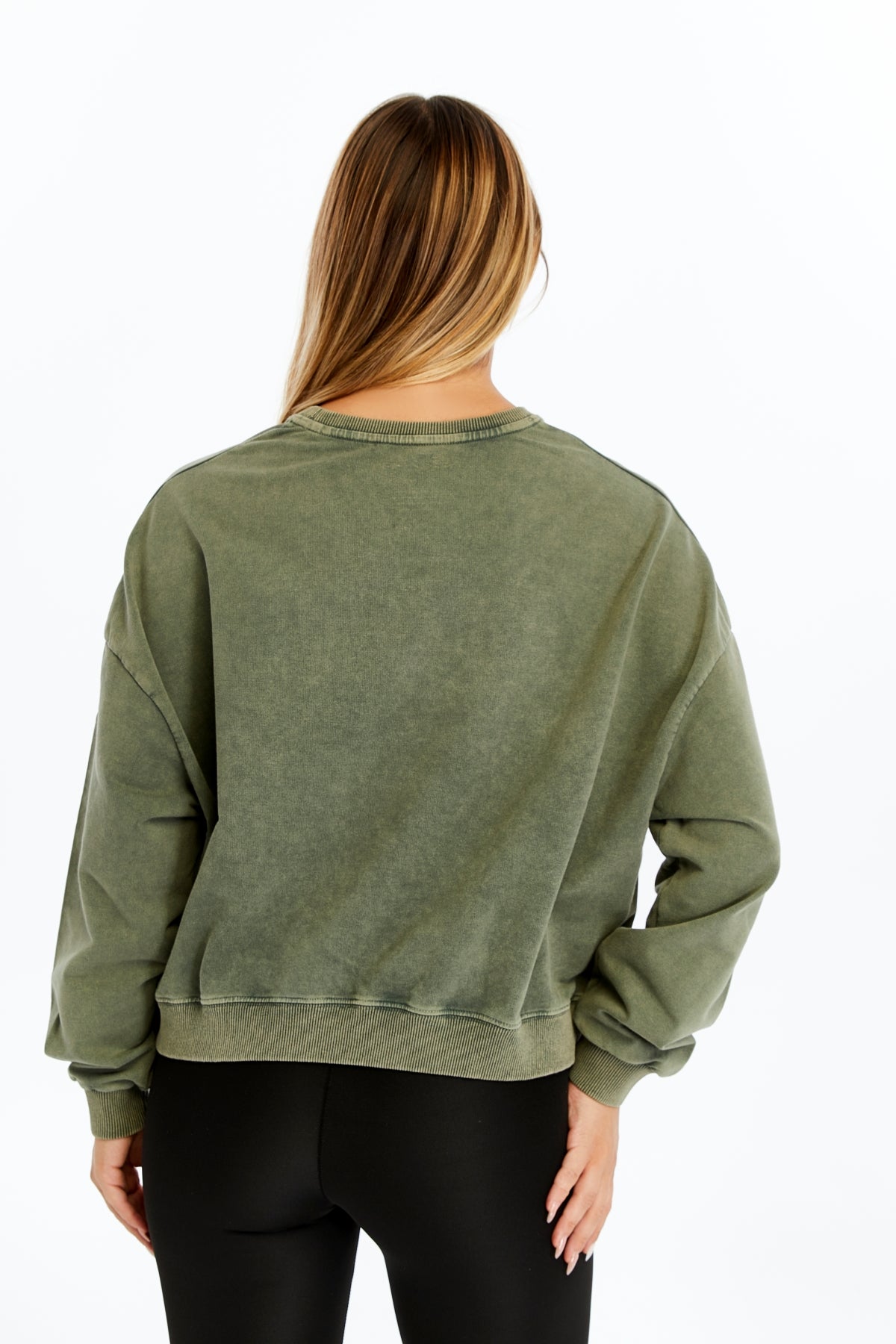 Stone Washed GHOST TREE PRINTEDWomen Cropped Sweatshirt