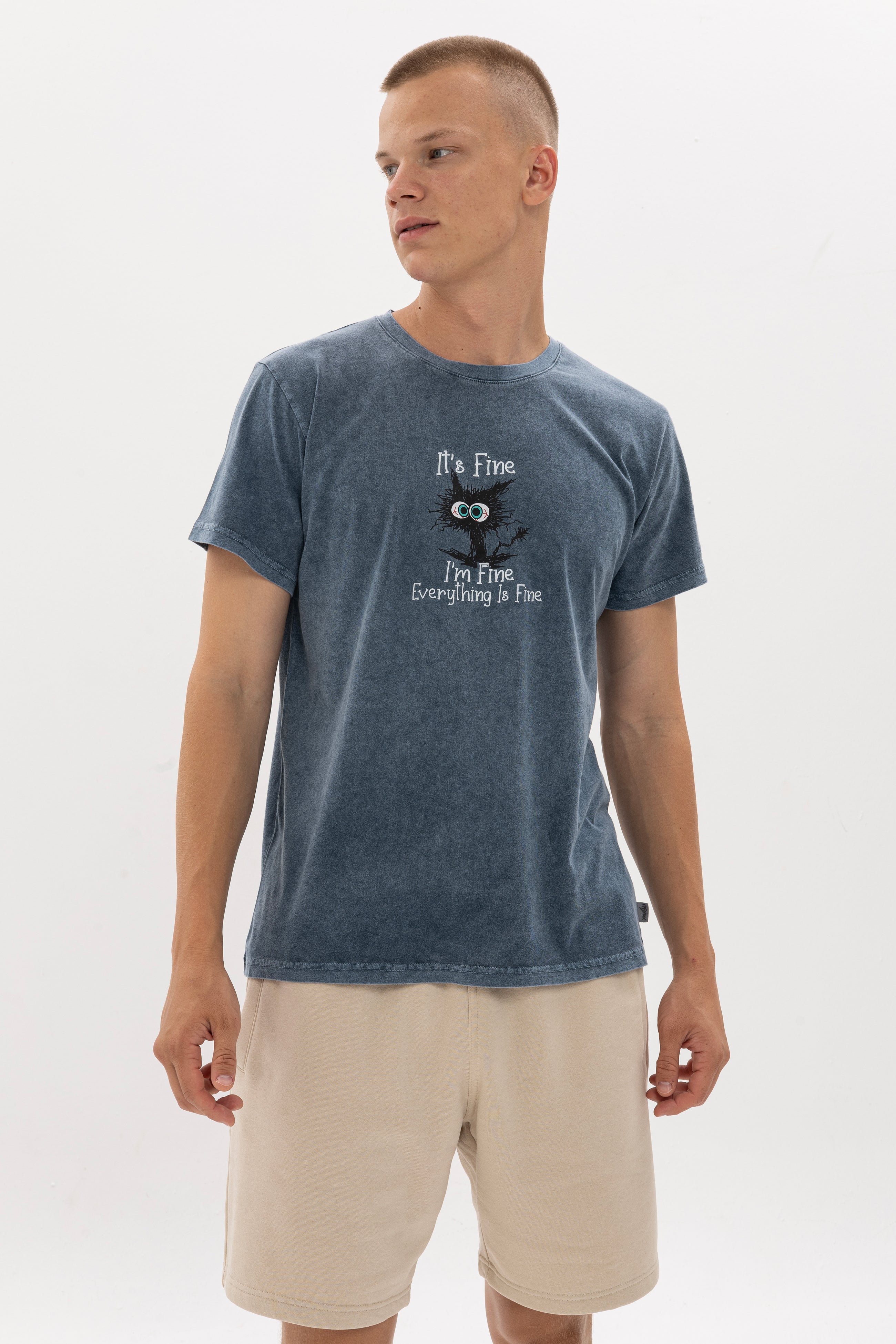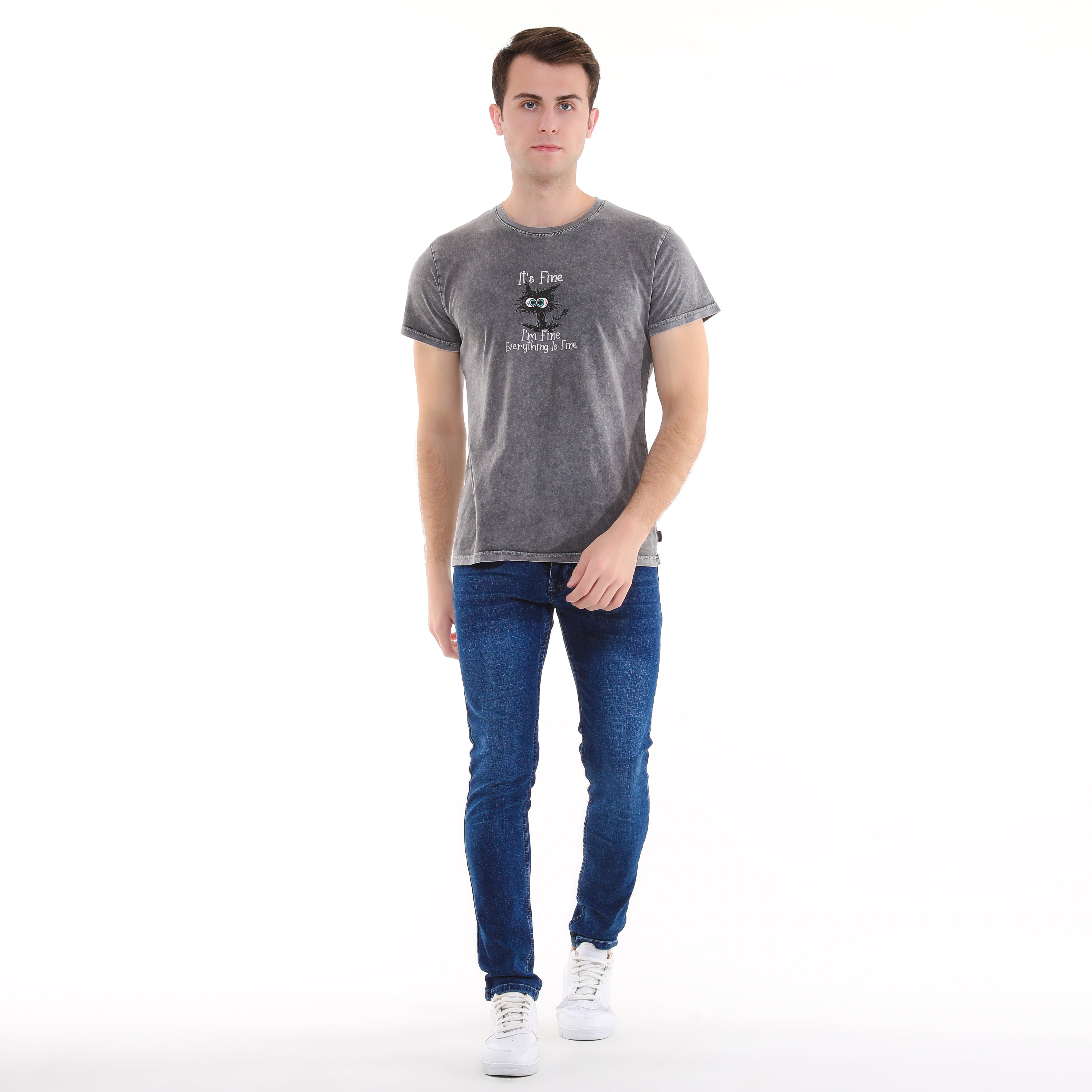 Stone Washed "I am Fine Everything Is Fine"Printed Cotton T-shirt