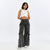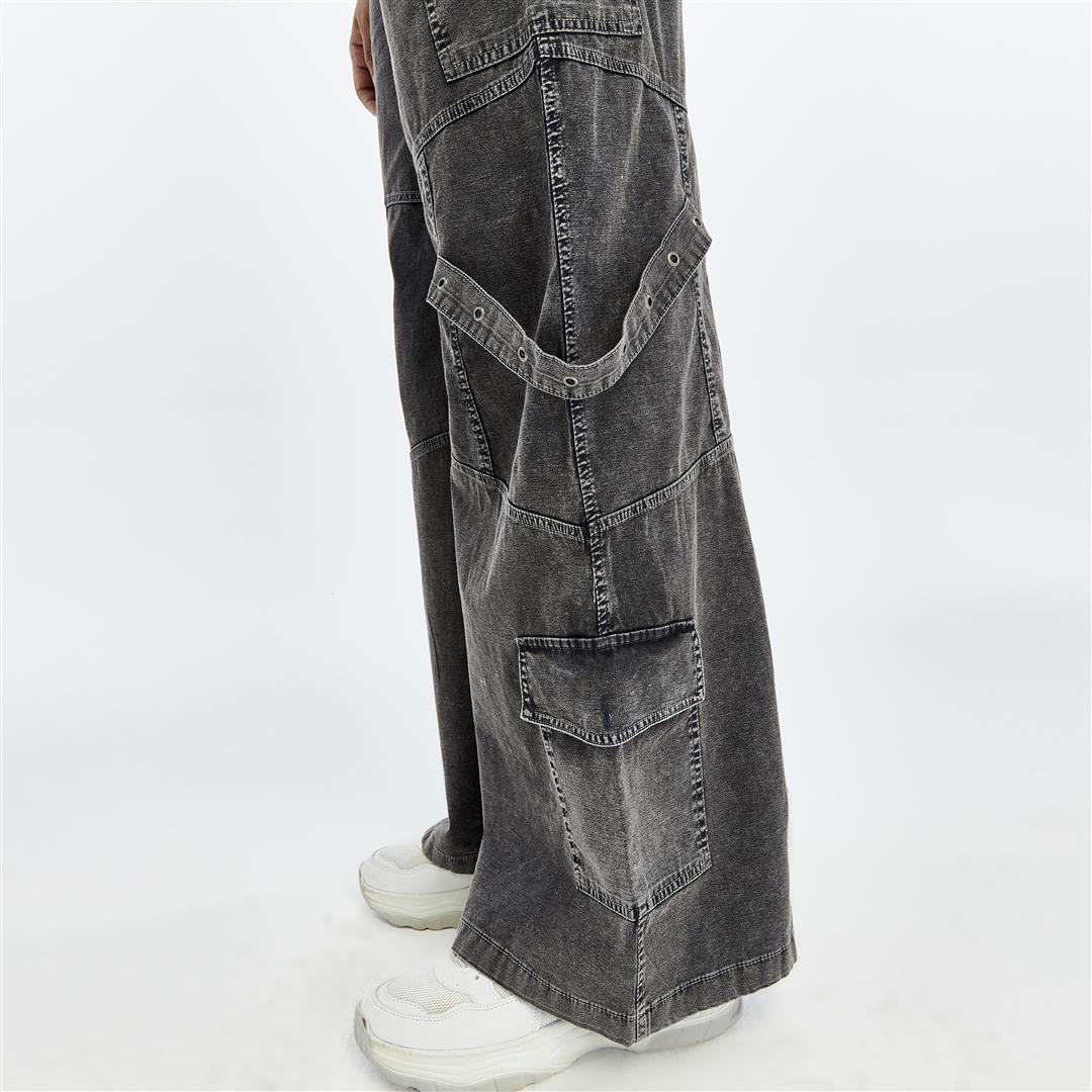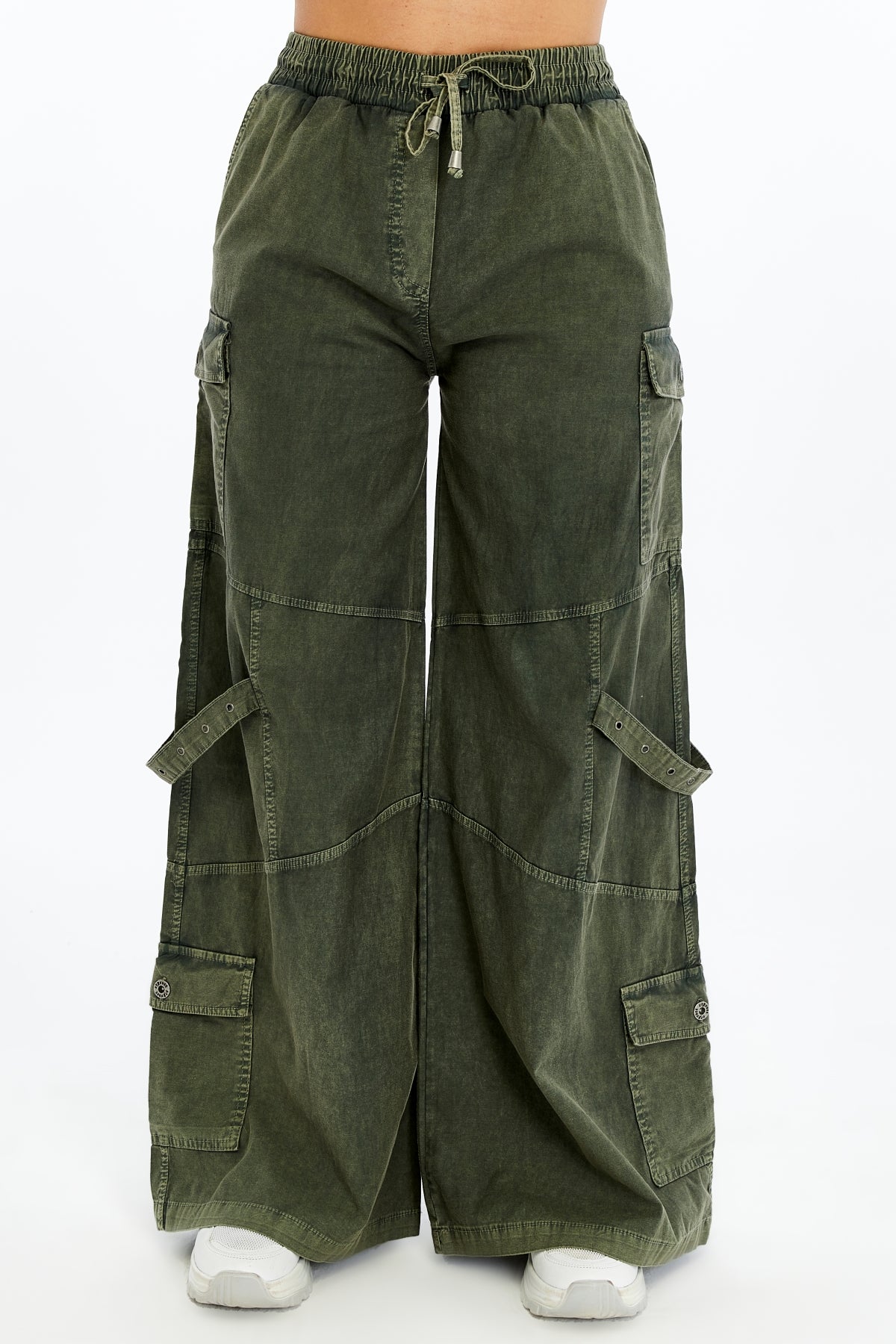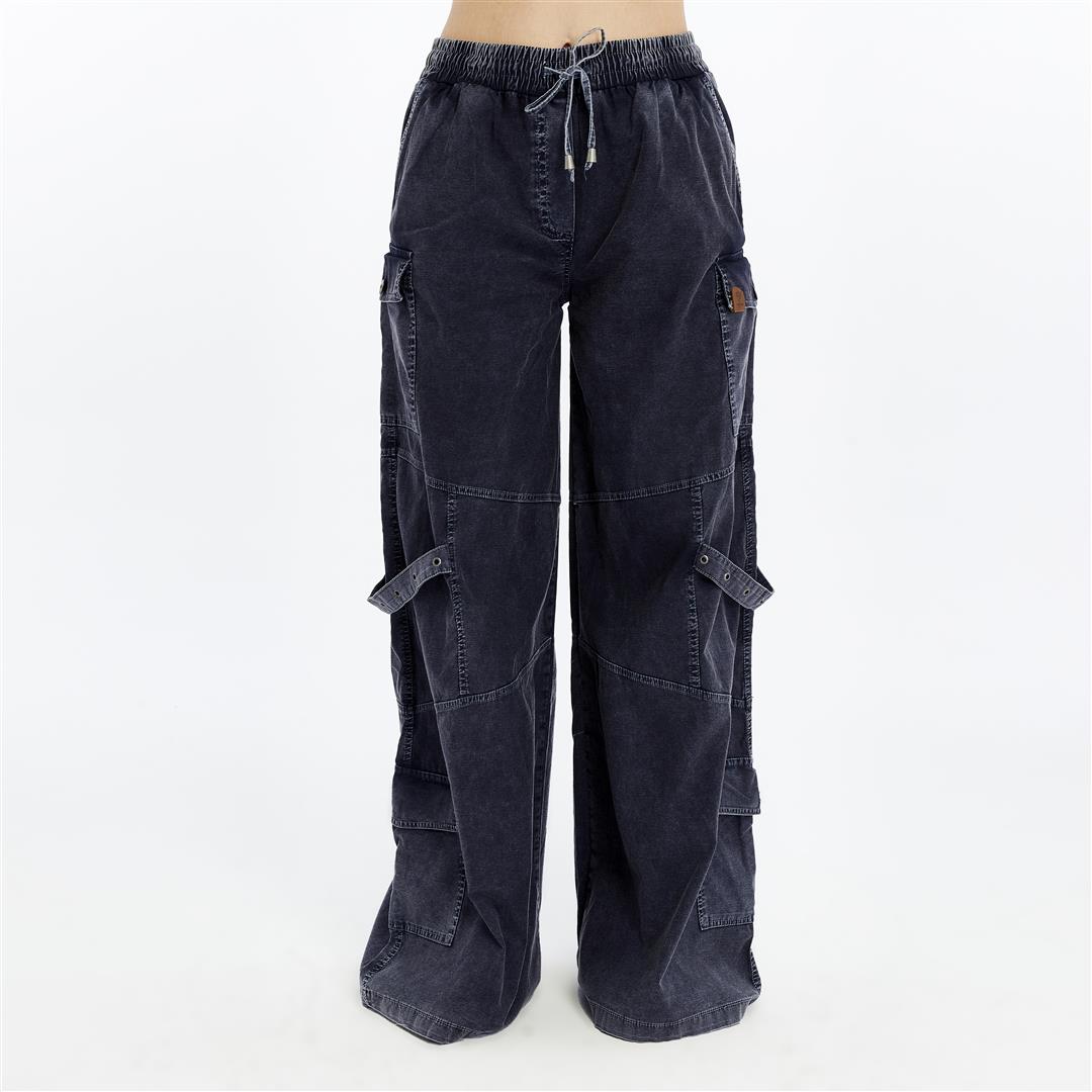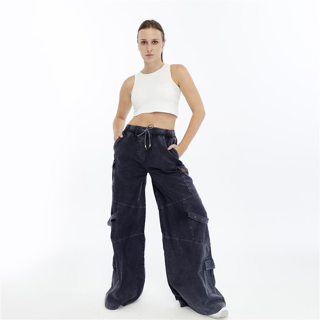High Waist Flare Legs Women Stone Washed Cotton Trouser