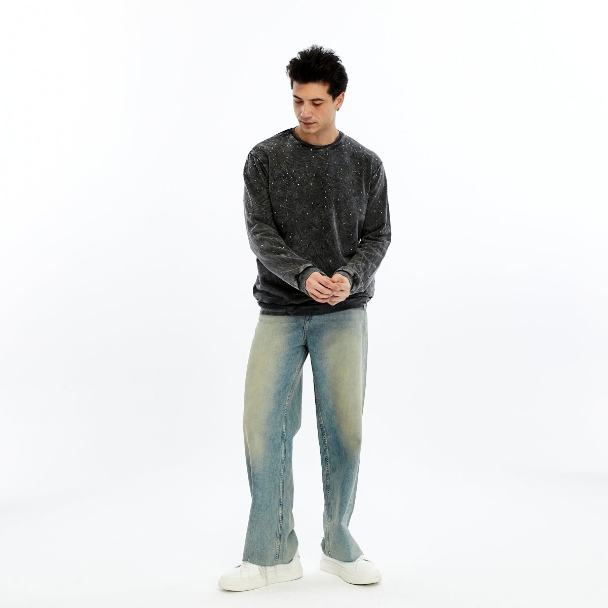 Anthracite Stone Washed STONE STAR PLAIN Cotton Men's Sweatshirt