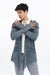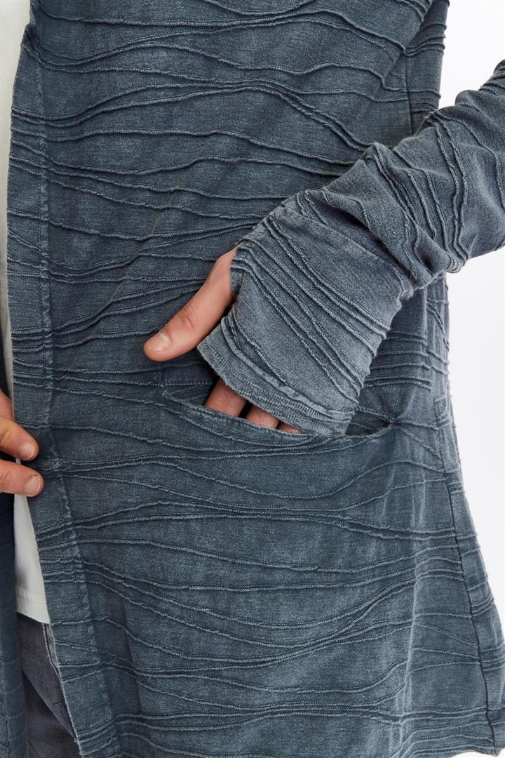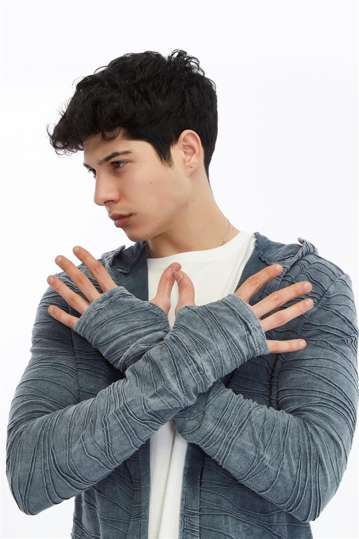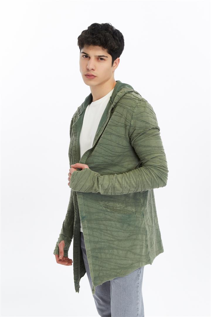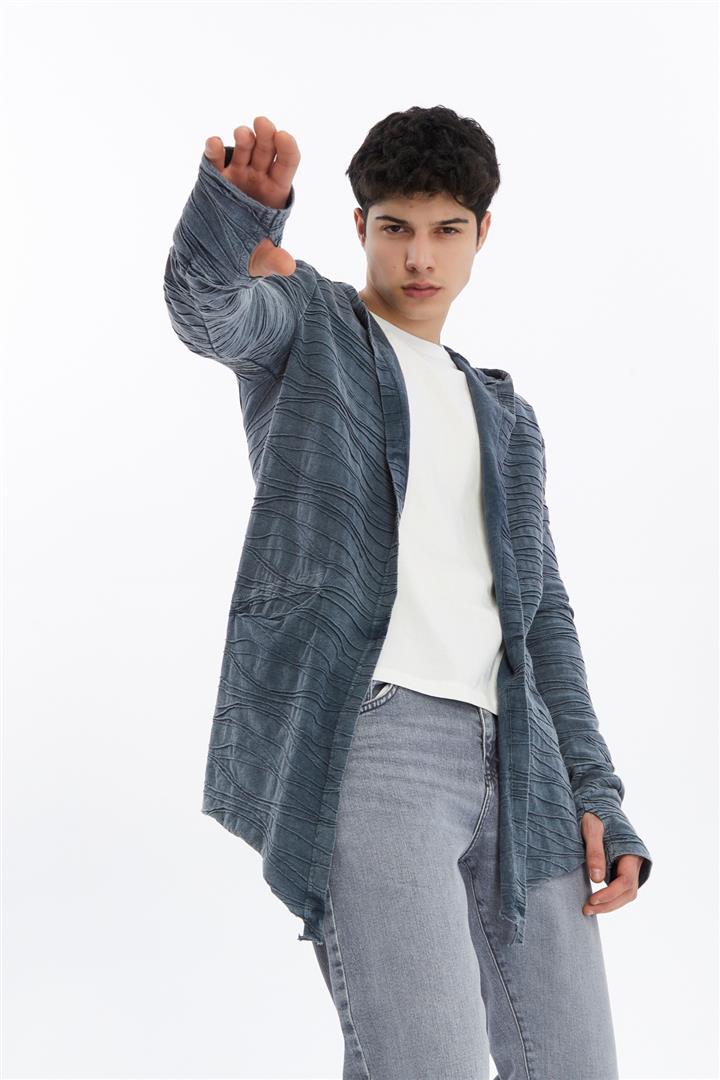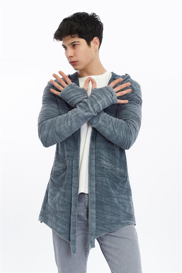 Thumbhole Sleeve Design Acid Washed Cotton Men's Hooded Cardigan