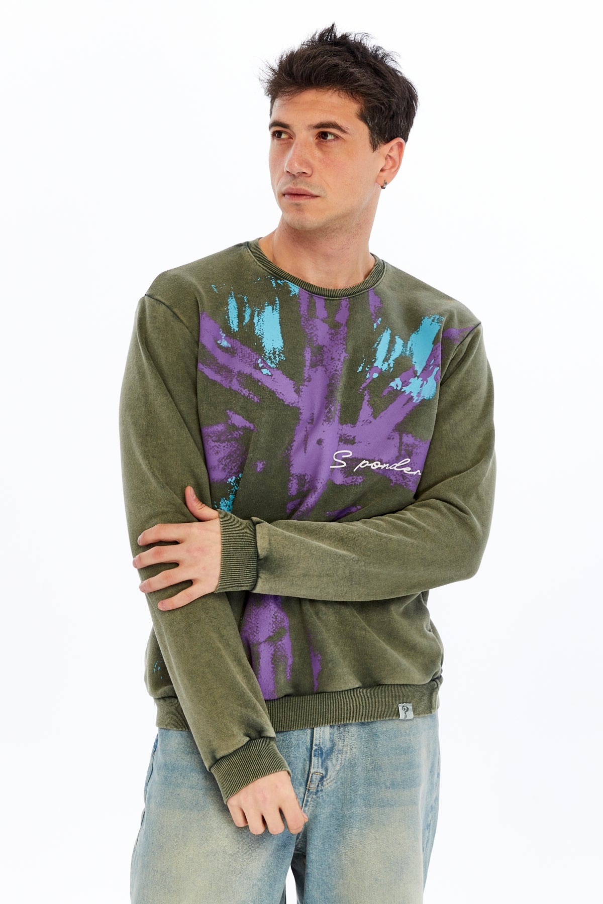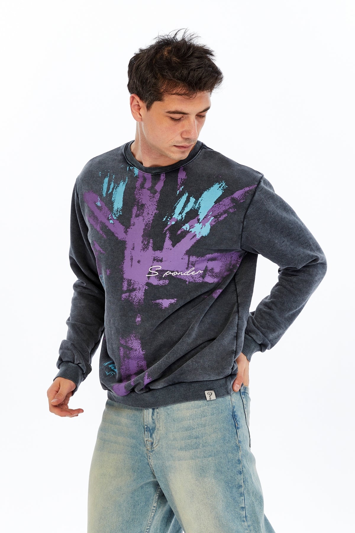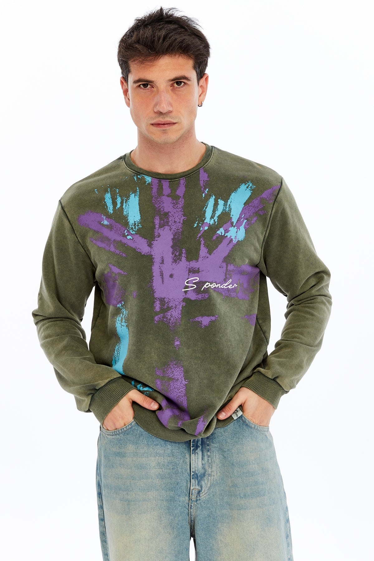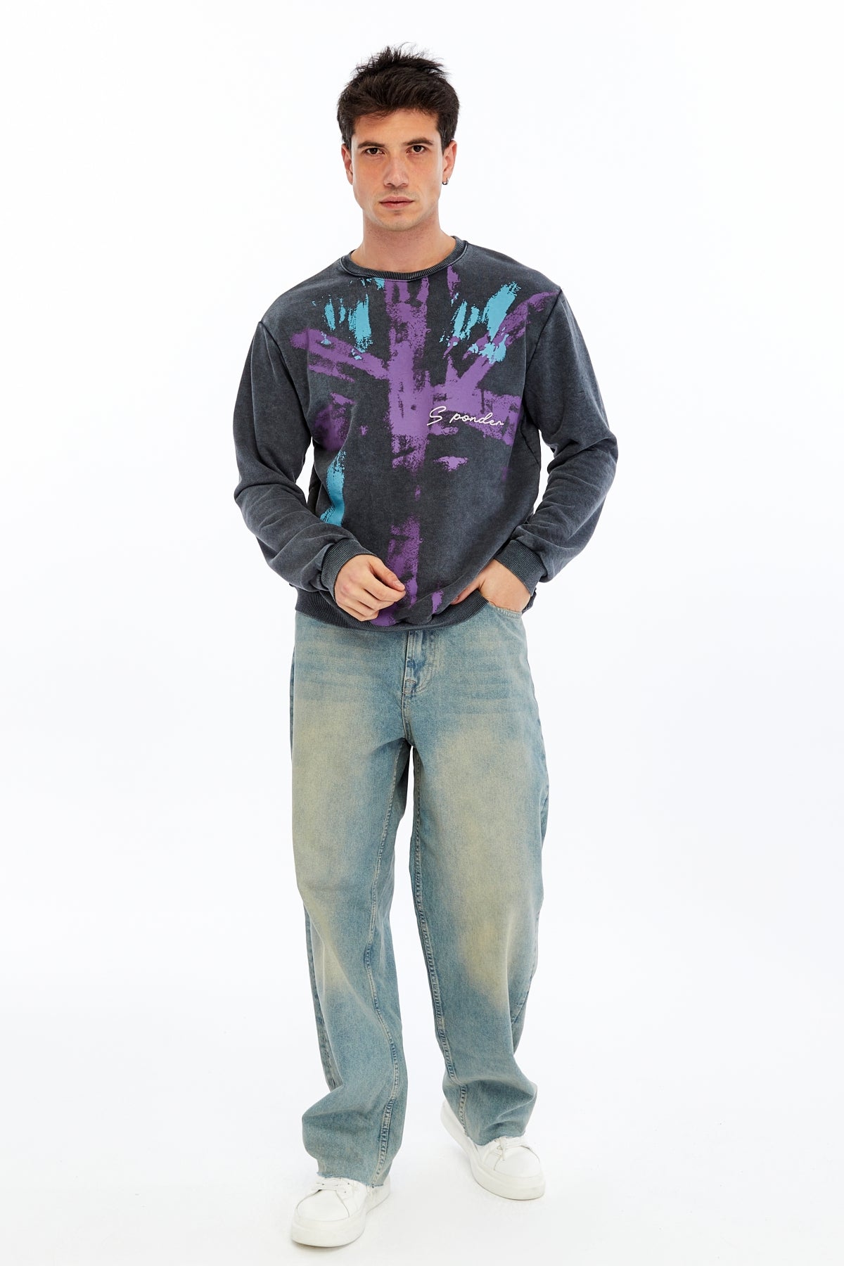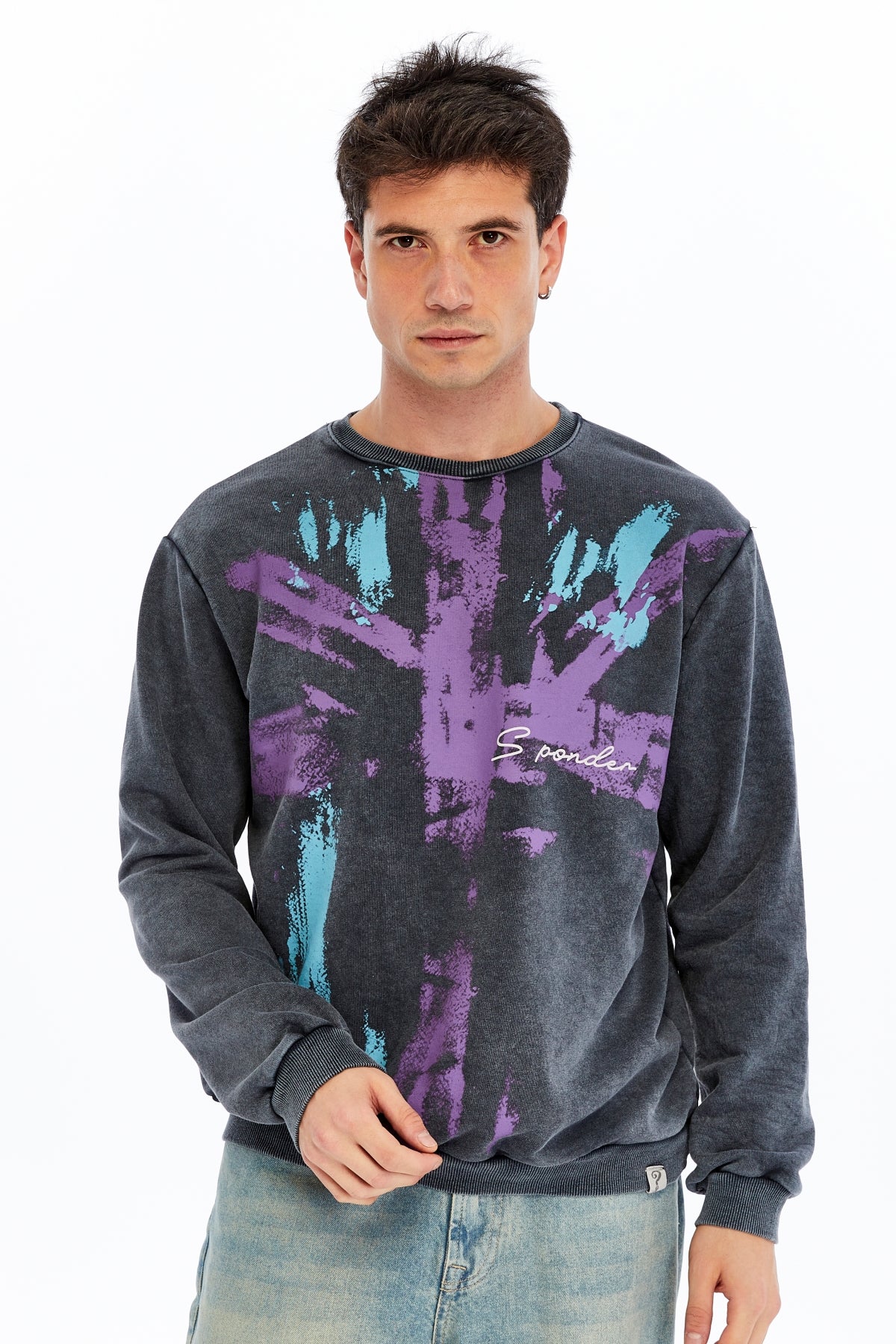 Stone WashedFlag PonderPrinted Cotton Men's Sweatshirt