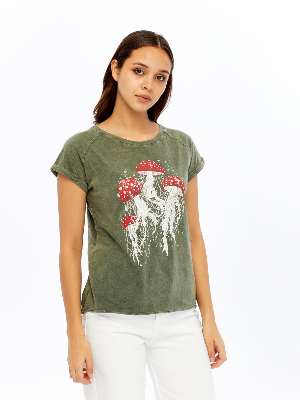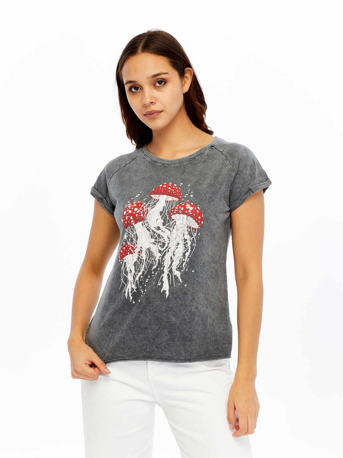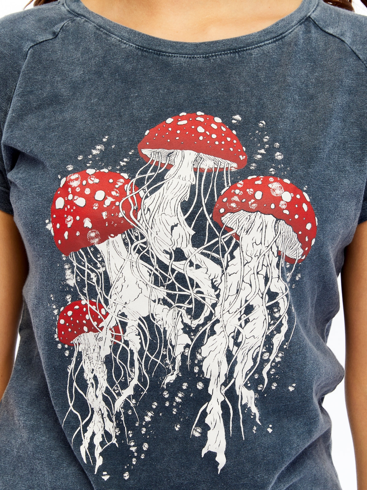Stone Washed Jelly Fish MushroomCotton Women T-shirt