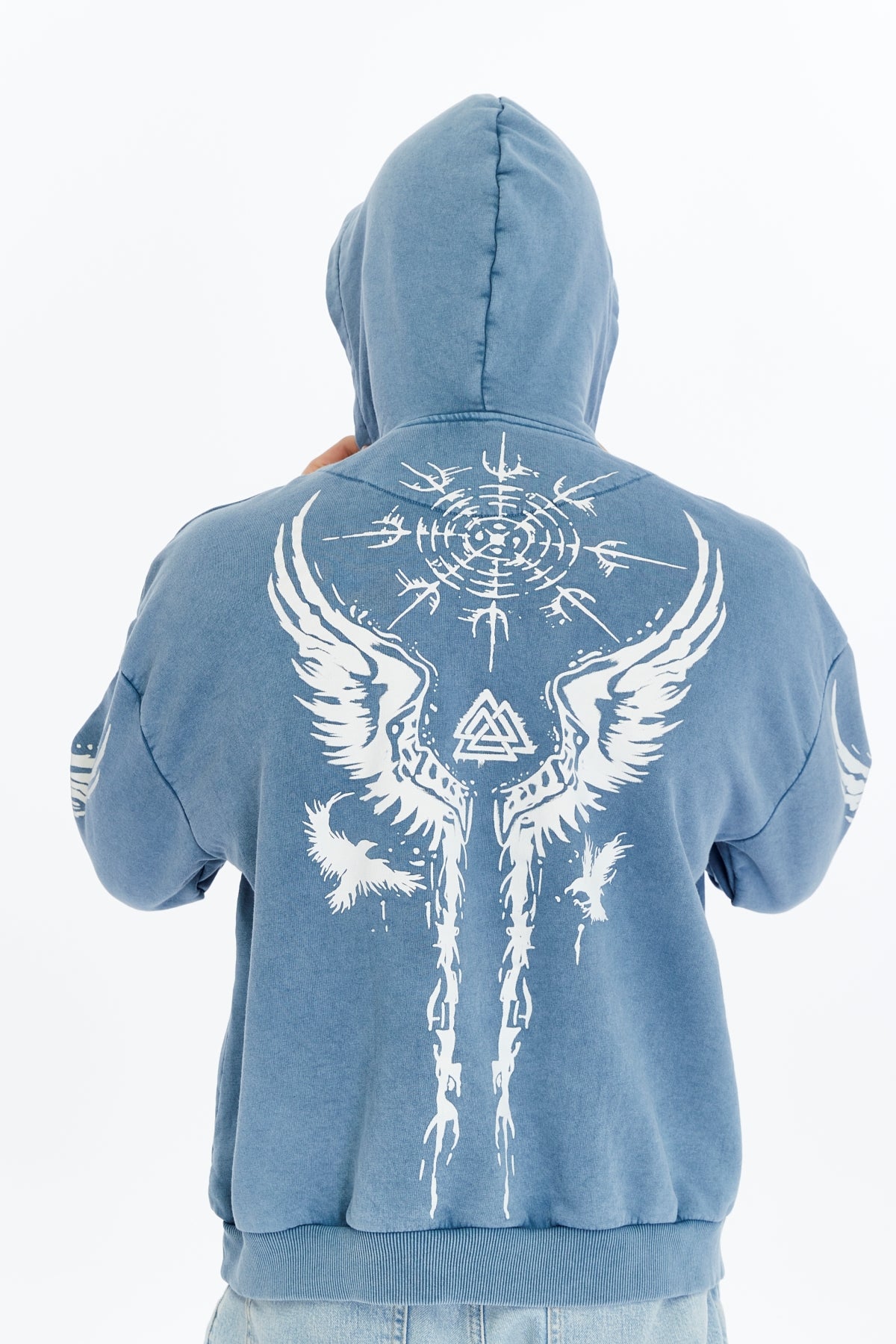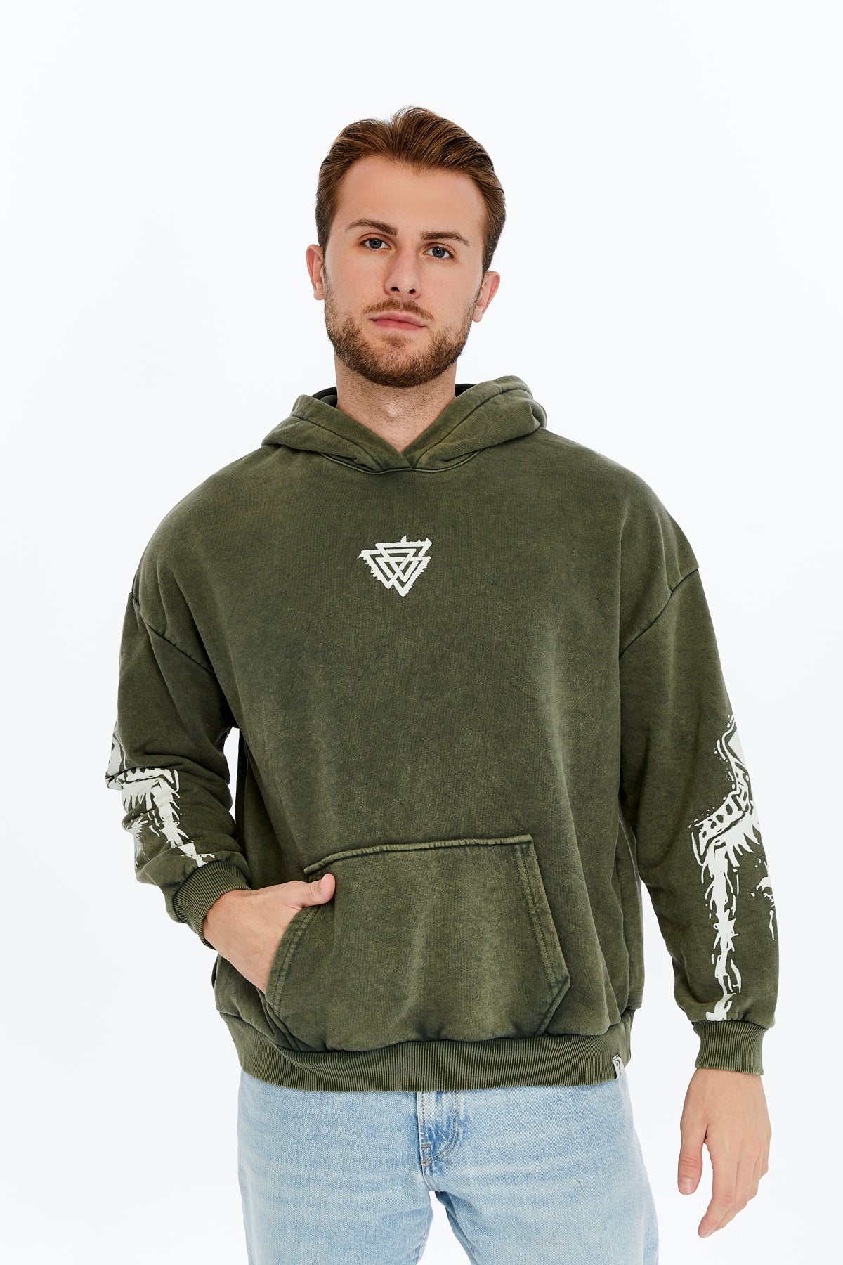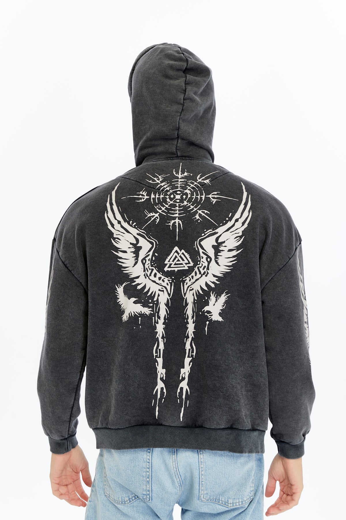 Stone Washed VIKING RAMEN Print at back Cotton Men's Hoodie