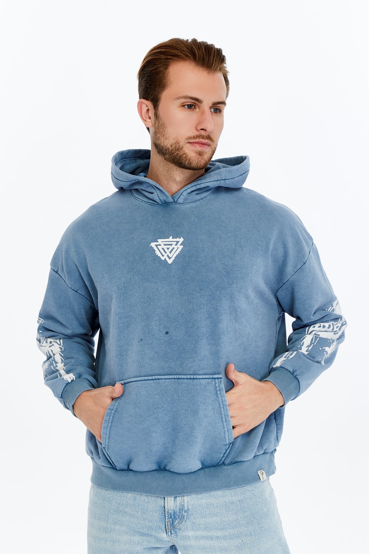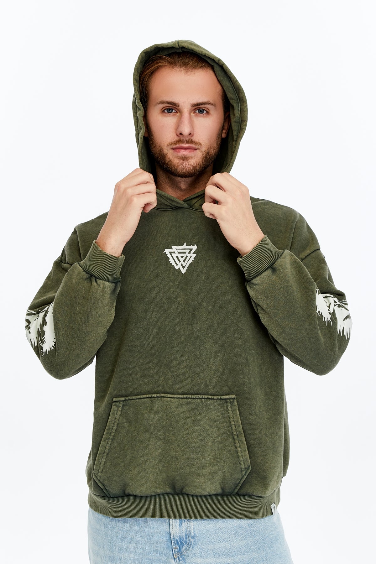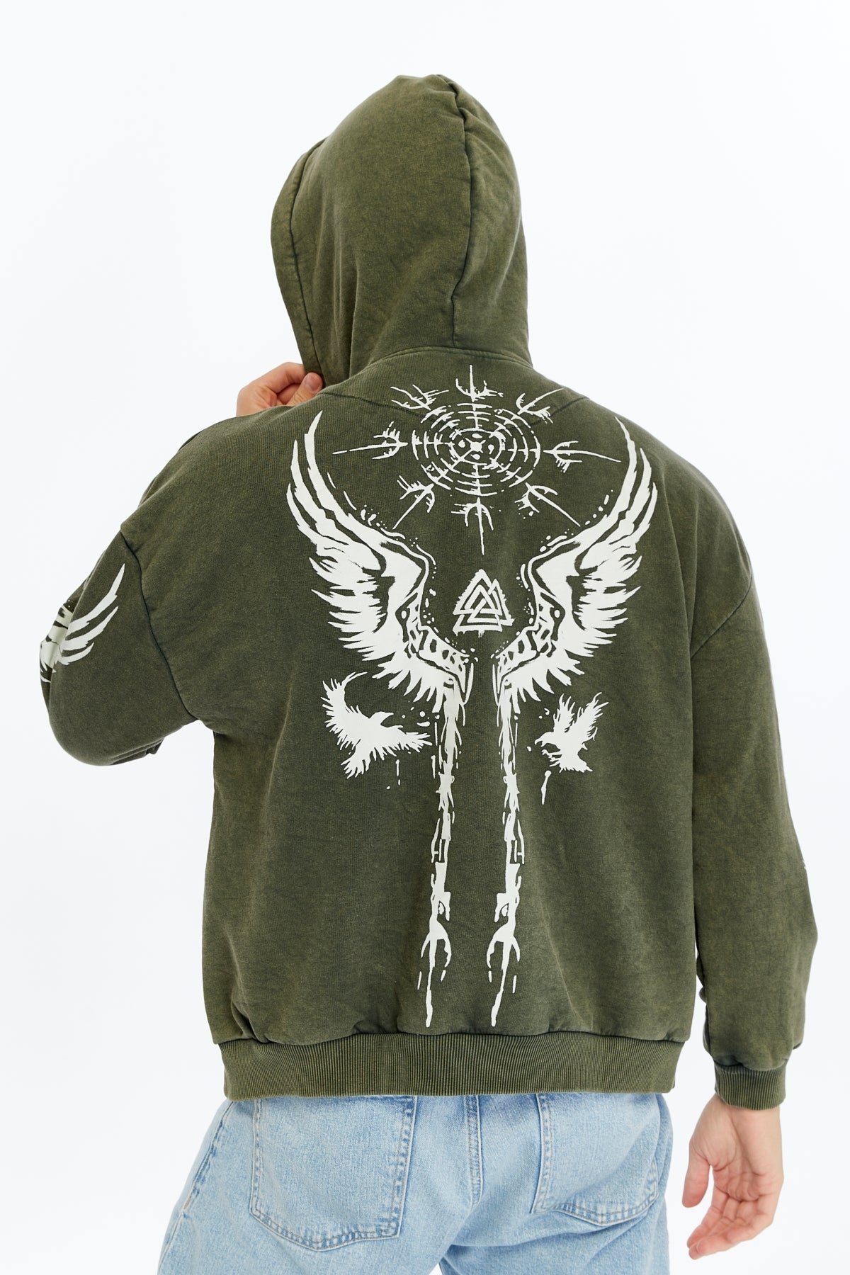 Stone Washed VIKING RAMEN Print at back Cotton Men's Hoodie